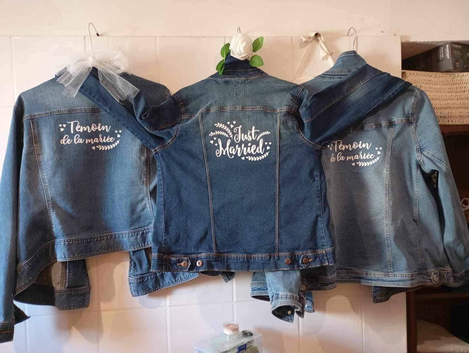 Flocage Just married pour veste en jean mariage